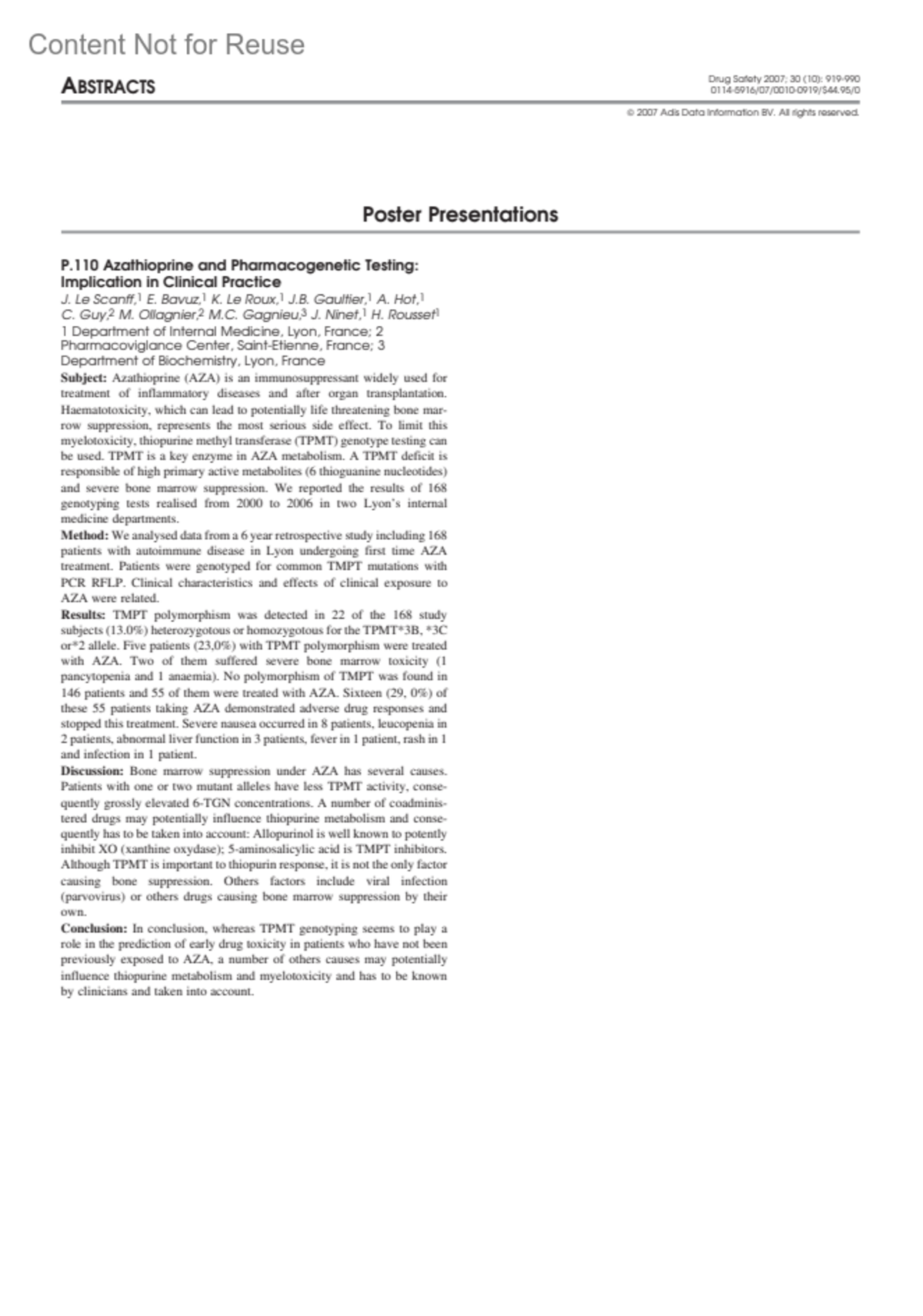 Drug Safety 30(10):p 919-990, 2007.