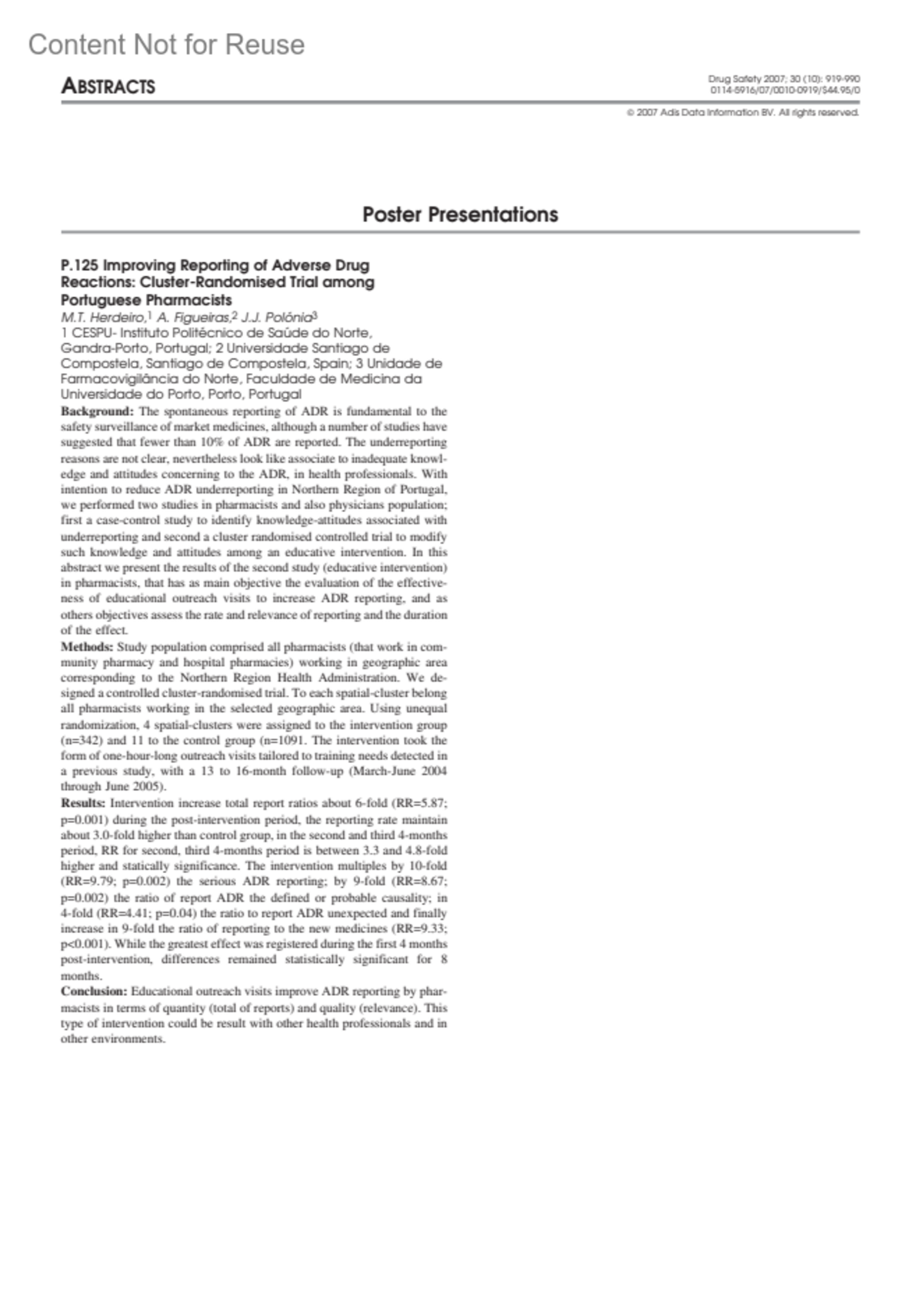 Improving Reporting of Adverse Drug Reactions: Cluster-Randomised Trial among Portuguese Pharmacists