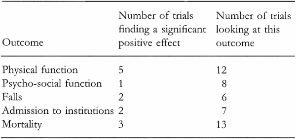 Fifteen trials were identified. Heterogeneity among trials was too great to allow meta-analysis. Eight trials reported at least one result favouring home visits over control intervention. Five trials reported no significant differences between groups for any measured outcome. None of the trials reported negative effects. TABLE