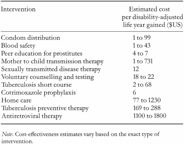 About 20% of deaths and disability-adjusted life years lost in Africa are related to HIV/AIDS. African governments must balance prevention, treatment and palliative care when funding interventions to reduce HIV. Evidence about the cost-effectiveness of different interventions is fragmented.
