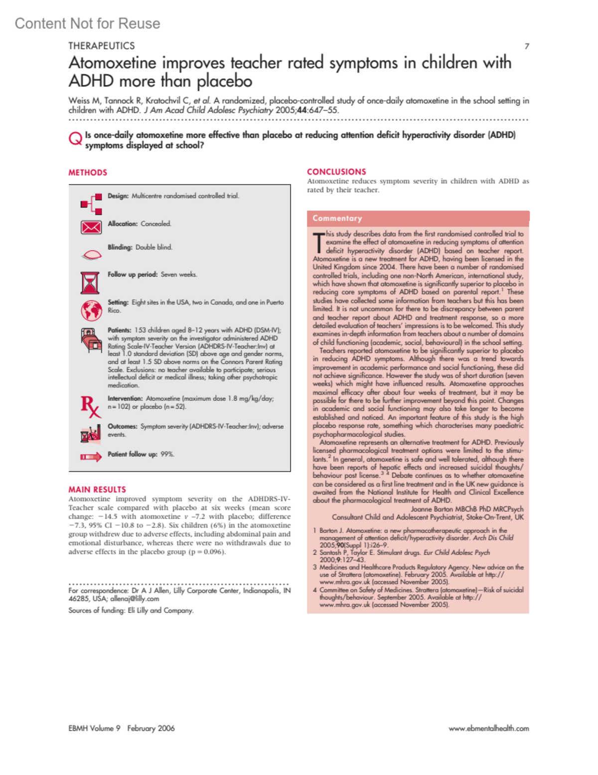Evidence-Based Mental Health 9(1):p 7, February 2006.
