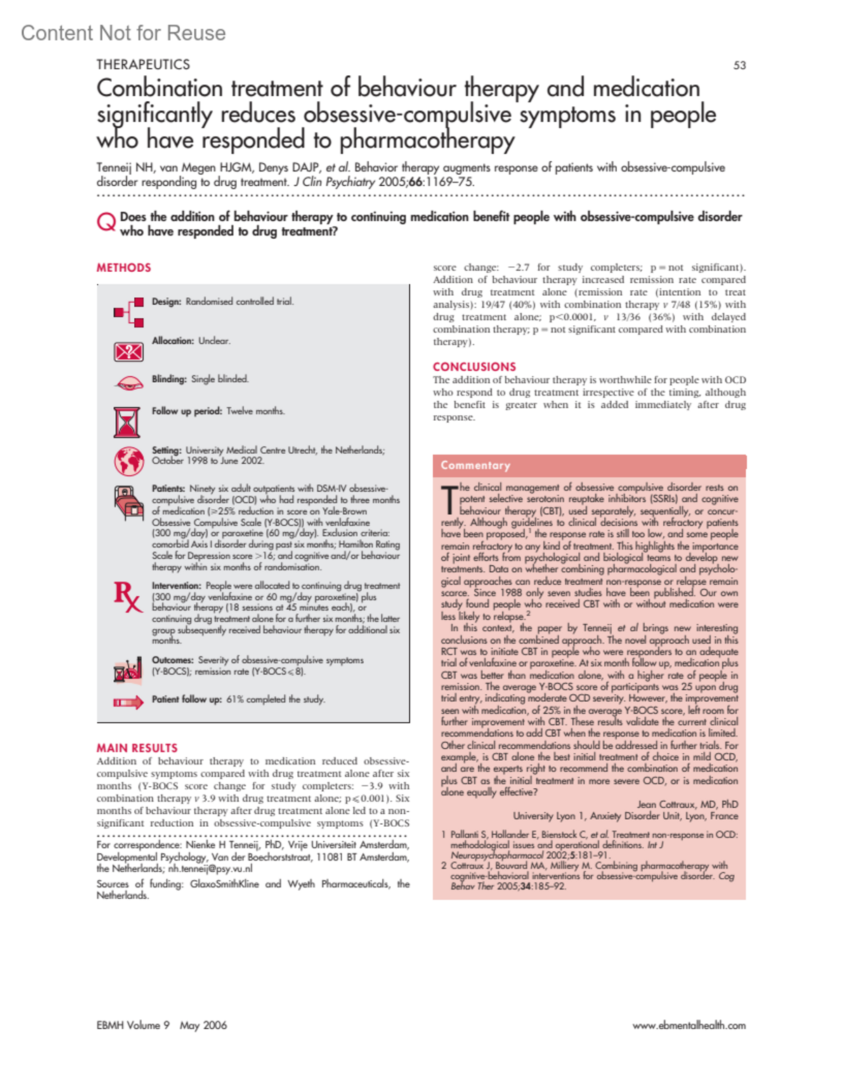 Evidence-Based Mental Health 9(2):p 53, May 2006.