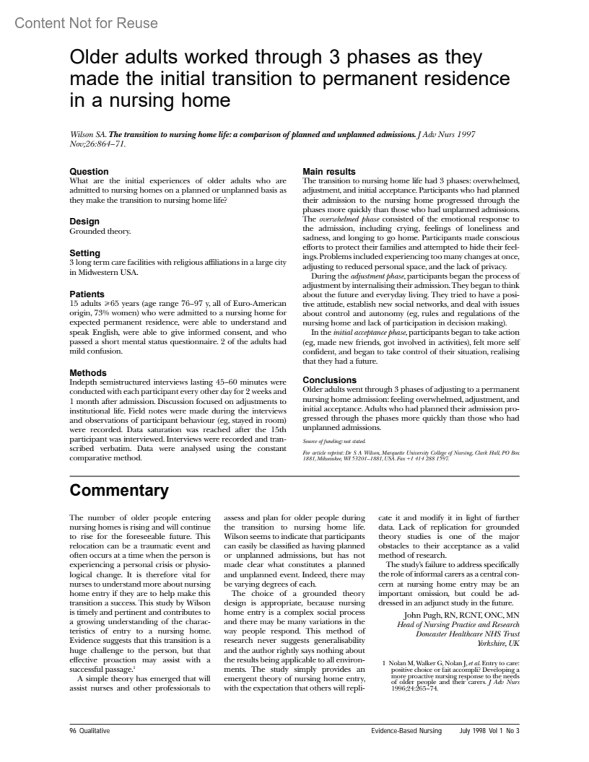 For article reprint: Dr S A Wilson, Marquette University College of Nursing, Clark Hall, PO Box 1881, Milwaukee, WI 53201–1881, USA. Fax +1 414 288 1597.