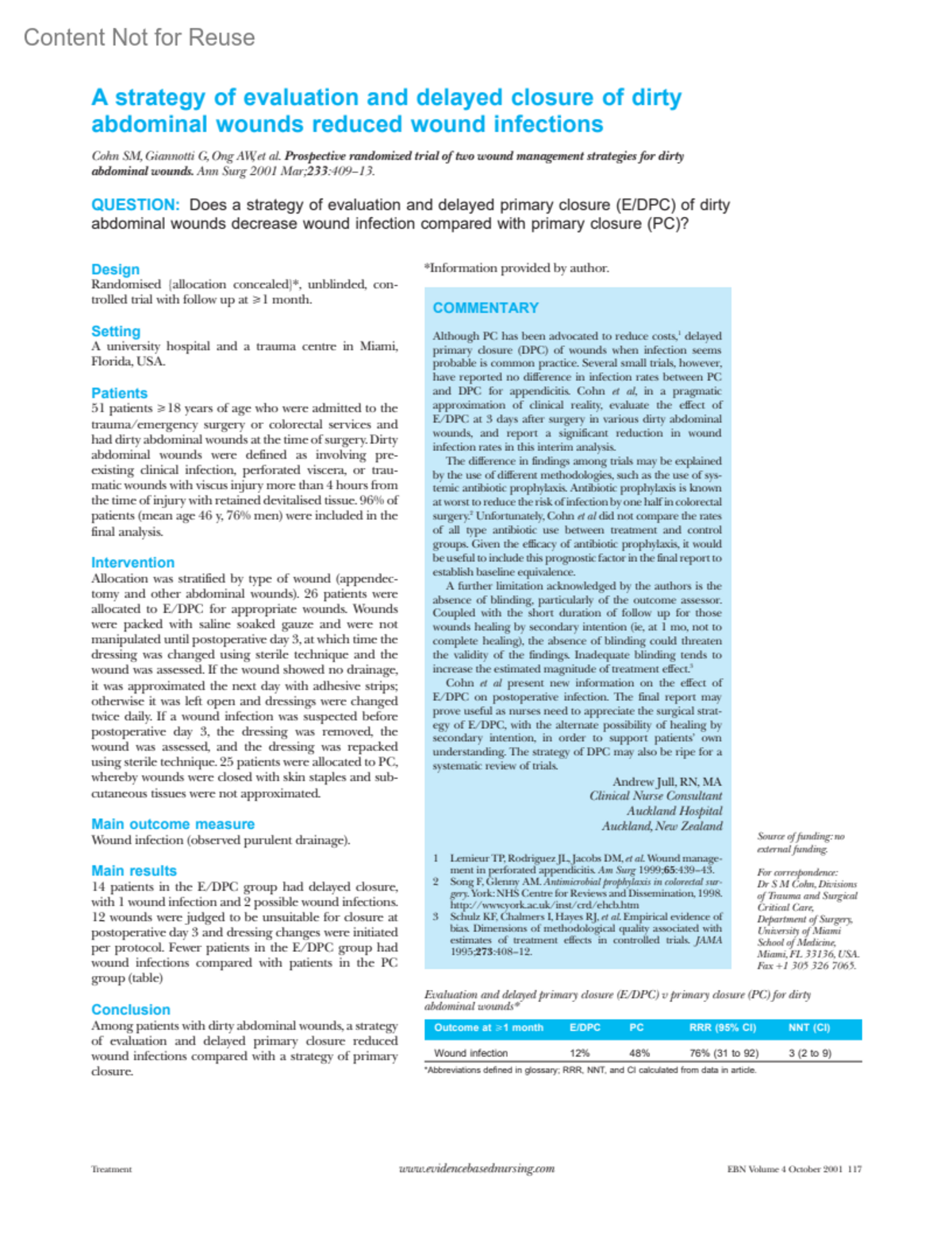 Cohn SM, Giannotti G, Ong AW, et al. Prospective randomized trial of two wound management strategies for dirty abdominal wounds. Ann Surg 2001 Mar;233:409–13