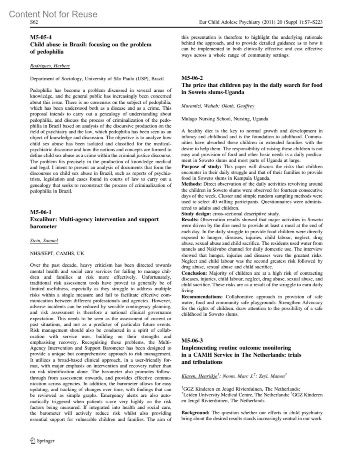 Excalibur: Multi-agency intervention and support barometerM5-06-1Samuel, SteinAuthor informationNHS/SEPT, CAMHS, UKEuropean Child & Adolescent Psychiatry 20:p S62, June 2011.Copyright © 2011 Springer. Part of Springer Science Business Media