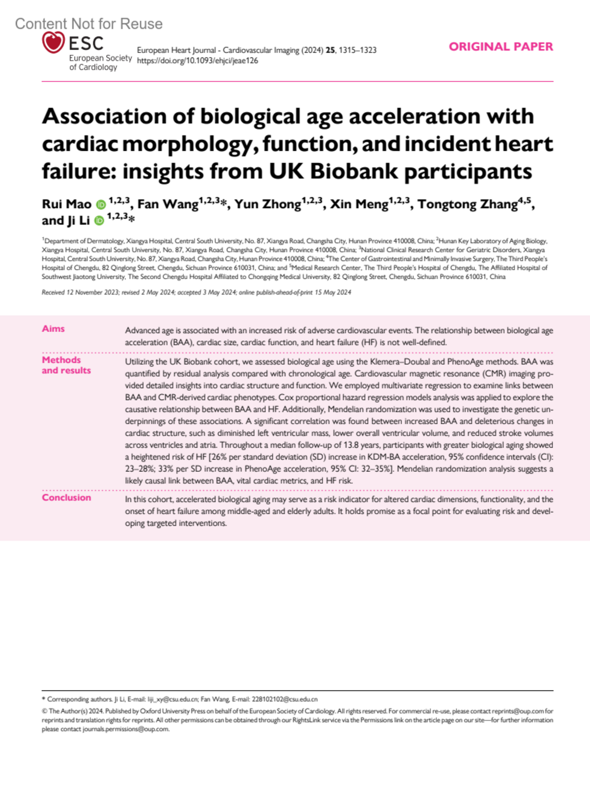 Association of biological age acceleration with cardiac morphology, function, and incident heart failure