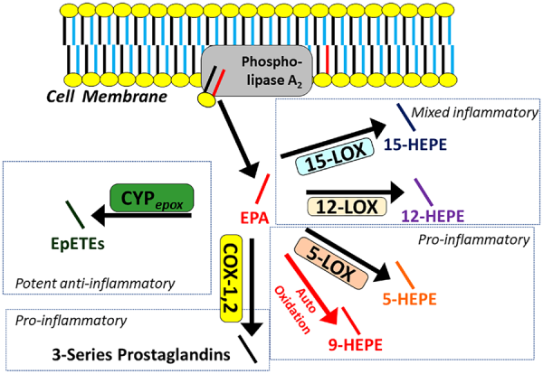 There are at least four ways increasing EPA availability can alter the oxylipin signalling pathways and affect downstream physiologic function: