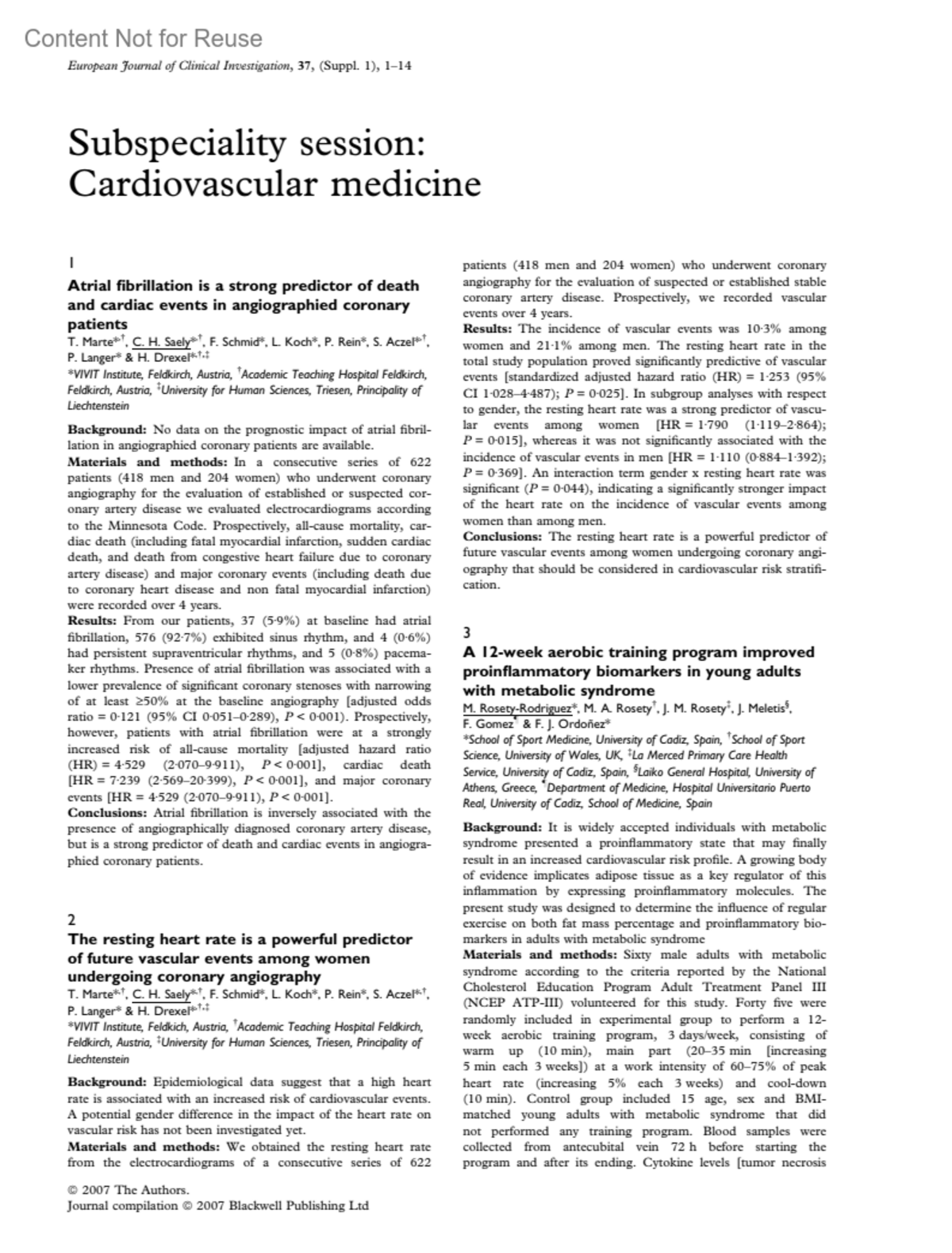 European Journal of Clinical Investigation 37:p 14, May 2007.