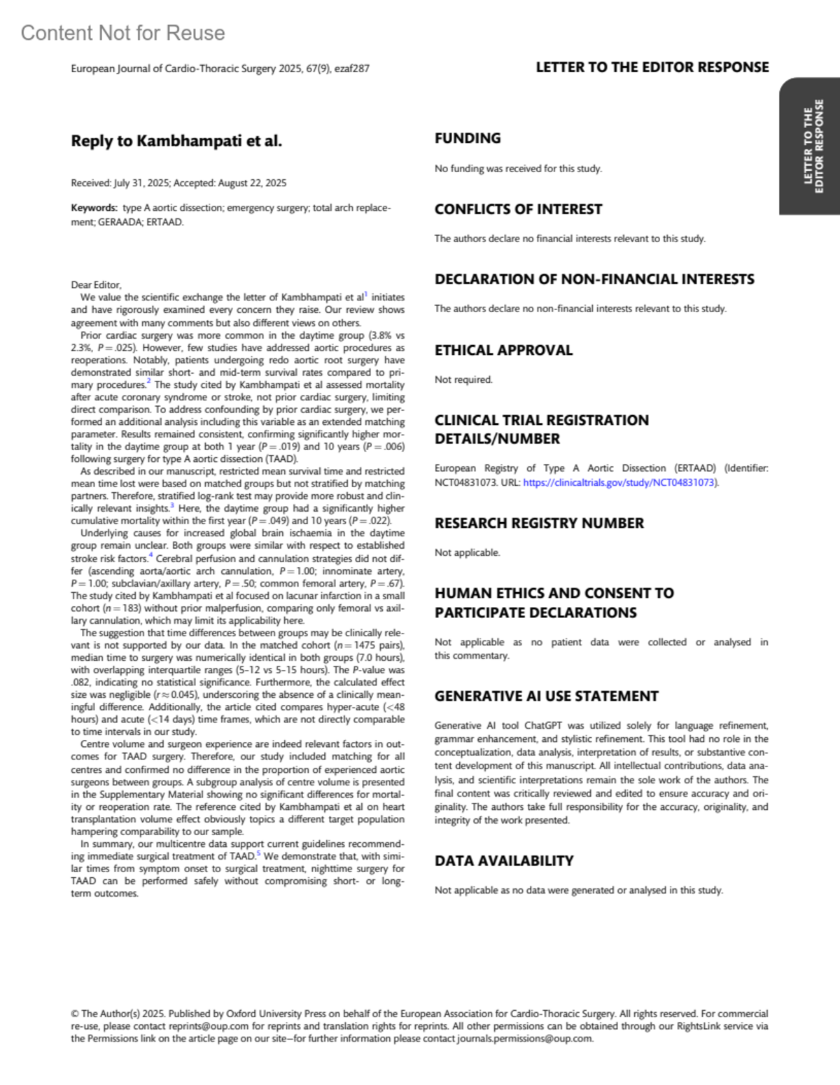 Corresponding author. Department of Cardiovascular Surgery, University Heart and Vascular Center Hamburg, Martinistraße 52, D-20246 Hamburg, Germany ([email protected])