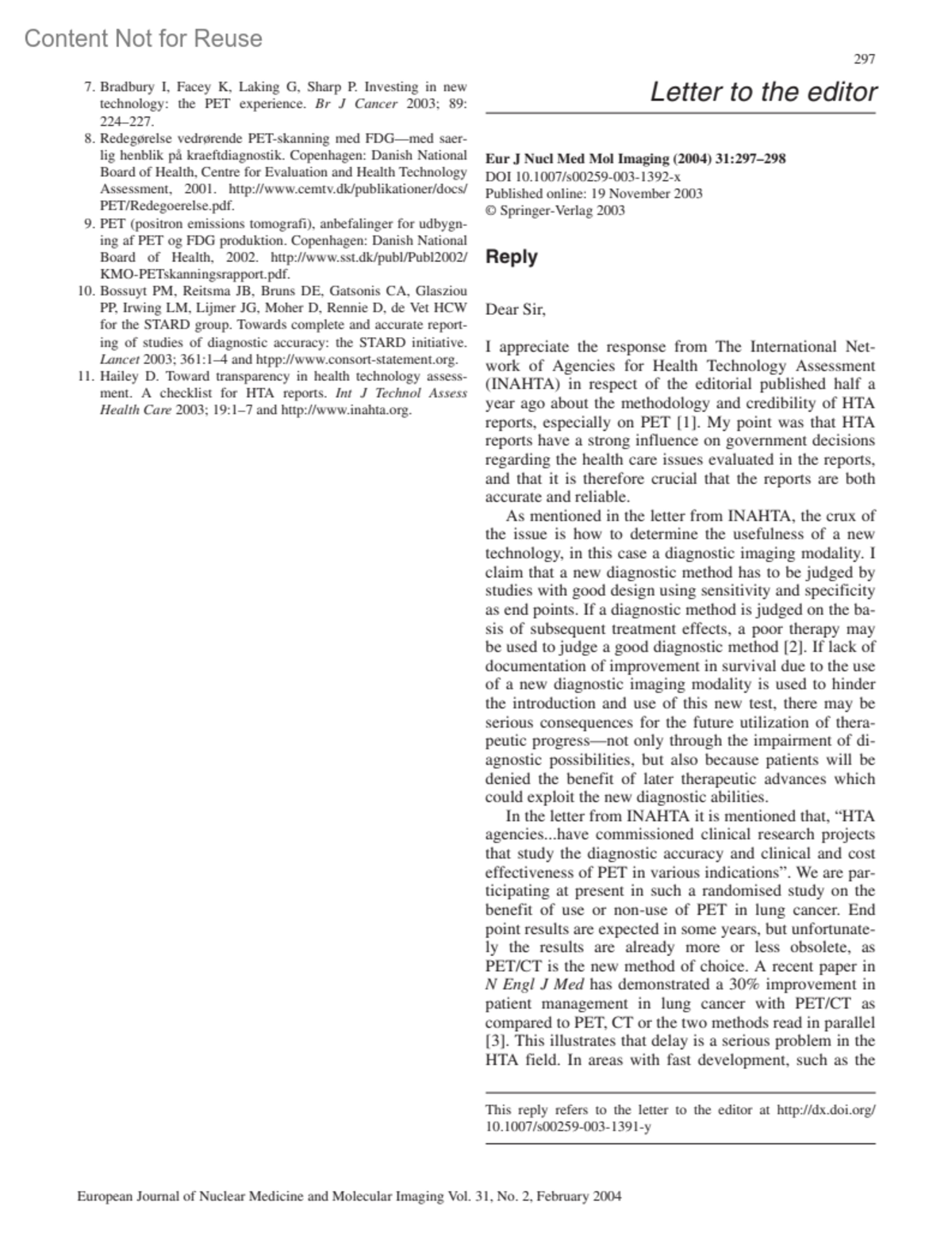 European Journal of Nuclear Medicine and Molecular Imaging 31(2):p 297-298, February 2004. | DOI: 10.1007/s00259-003-1392-x