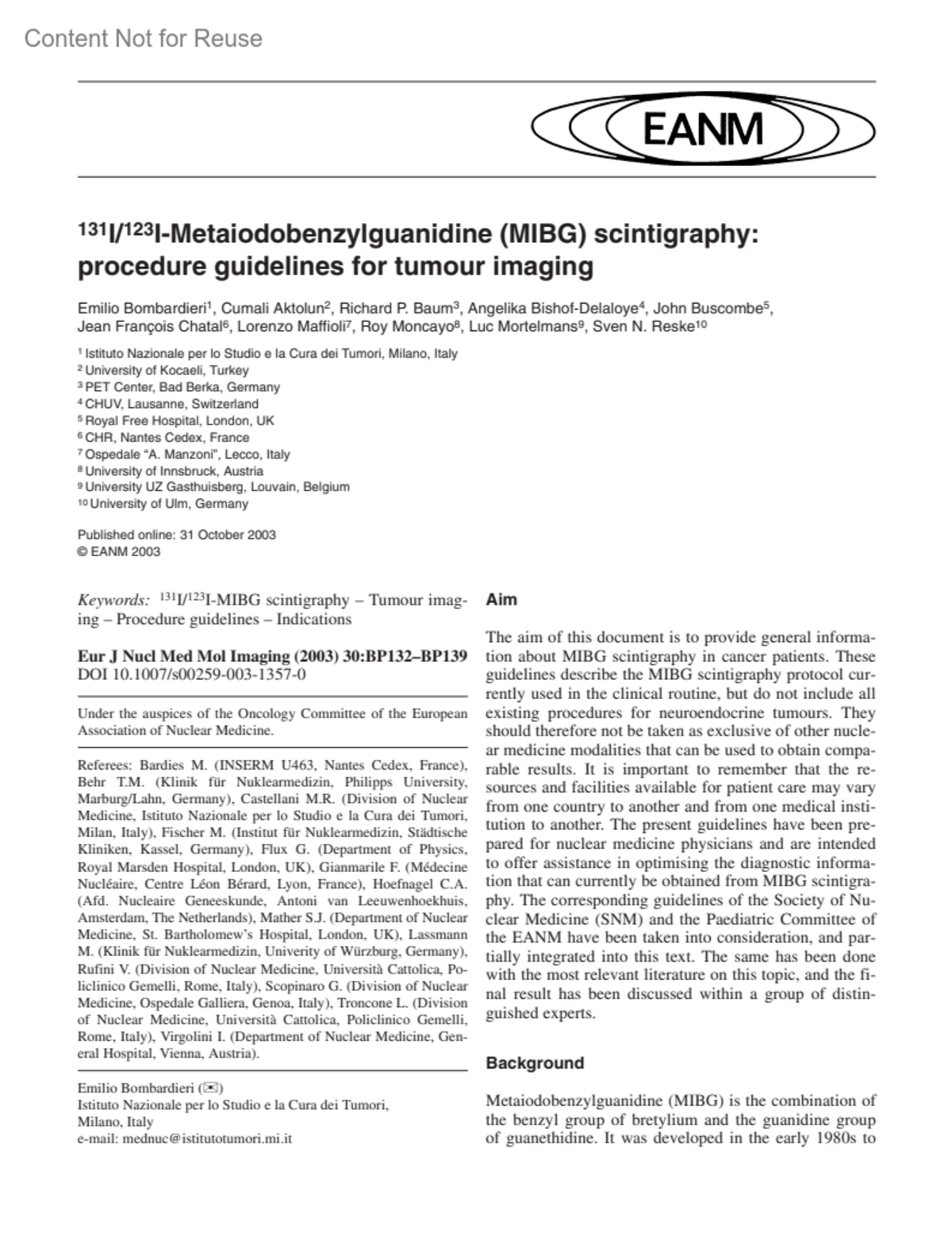 131I/123I-Metaiodobenzylguanidine (MIBG) scintigraphy