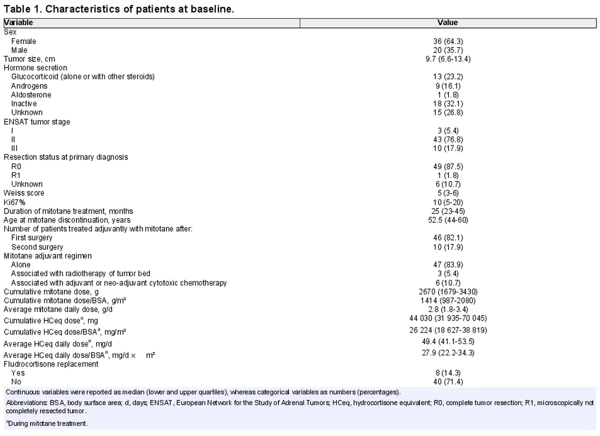 Baseline characteristics of patients were in the expected range for an ACC cohort undergoing adjuvant mitotane therapy (Table 1). Details on mitotane treatment and glucocorticoid replacement are also provided in Table 1.