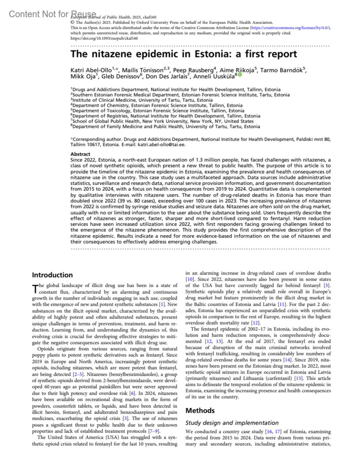 Drugs and Addictions Department, National Institute for Health Development, Tallinn, Estonia