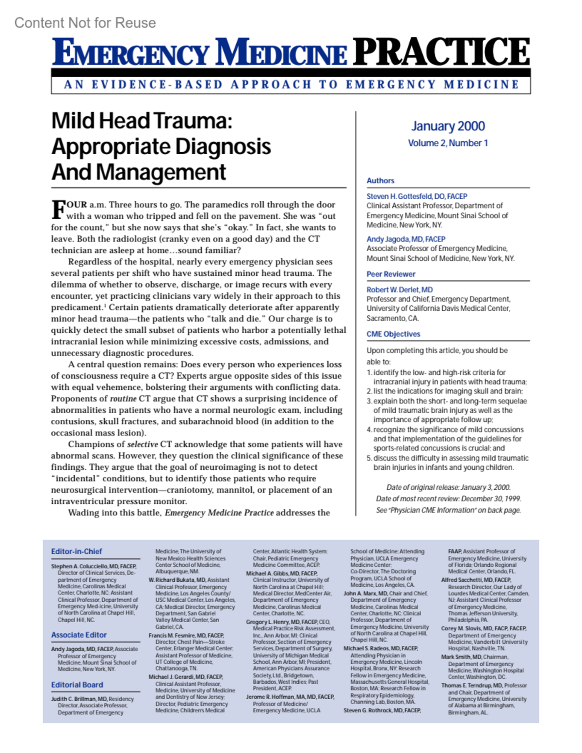 Emergency Medicine Practice 2(1):p 1-23, January 2000.