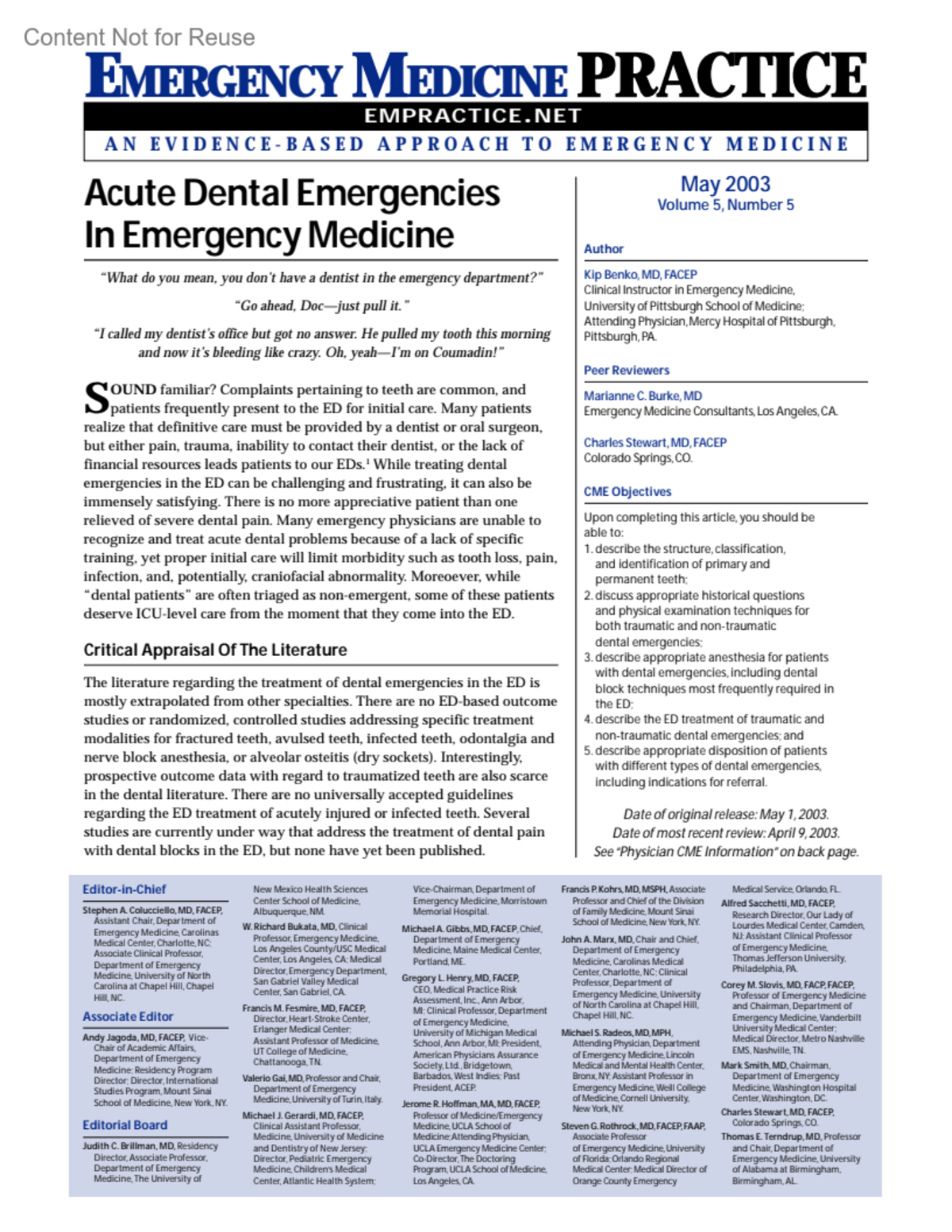 Emergency Medicine Practice 5(5):p 1-23, May 2003.