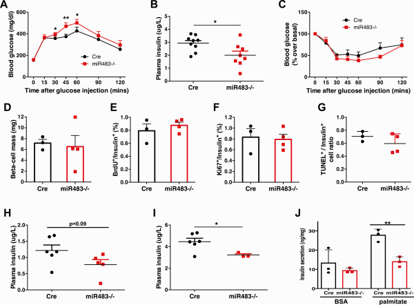 miR-483 Deletion Increases Blood Glucose and Reduces Plasma Insulin Levels in Mice Fed High-fat Diet