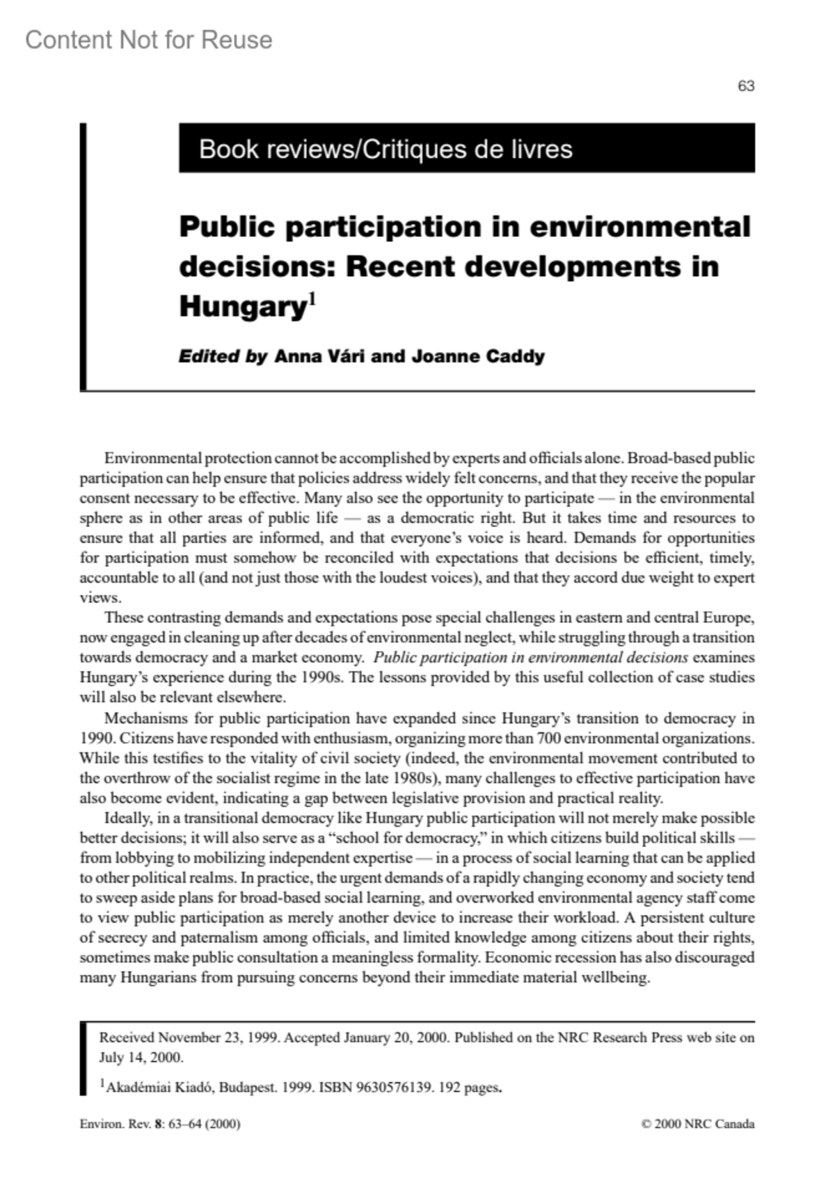 Environmental Reviews 8(1):p 63-64, March 2000.