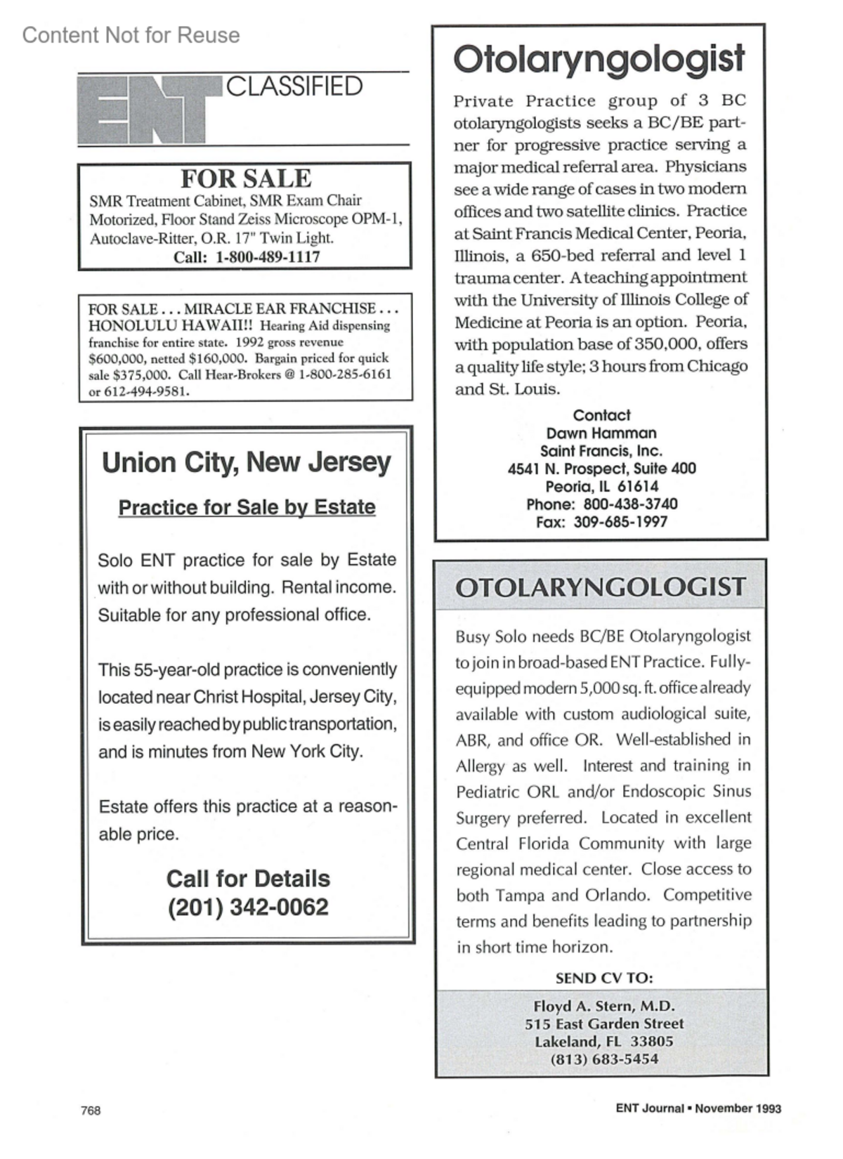 Ear, Nose & Throat Journal 72(11):p 768-770, November 1993. | DOI: 10.1177/014556139307201120