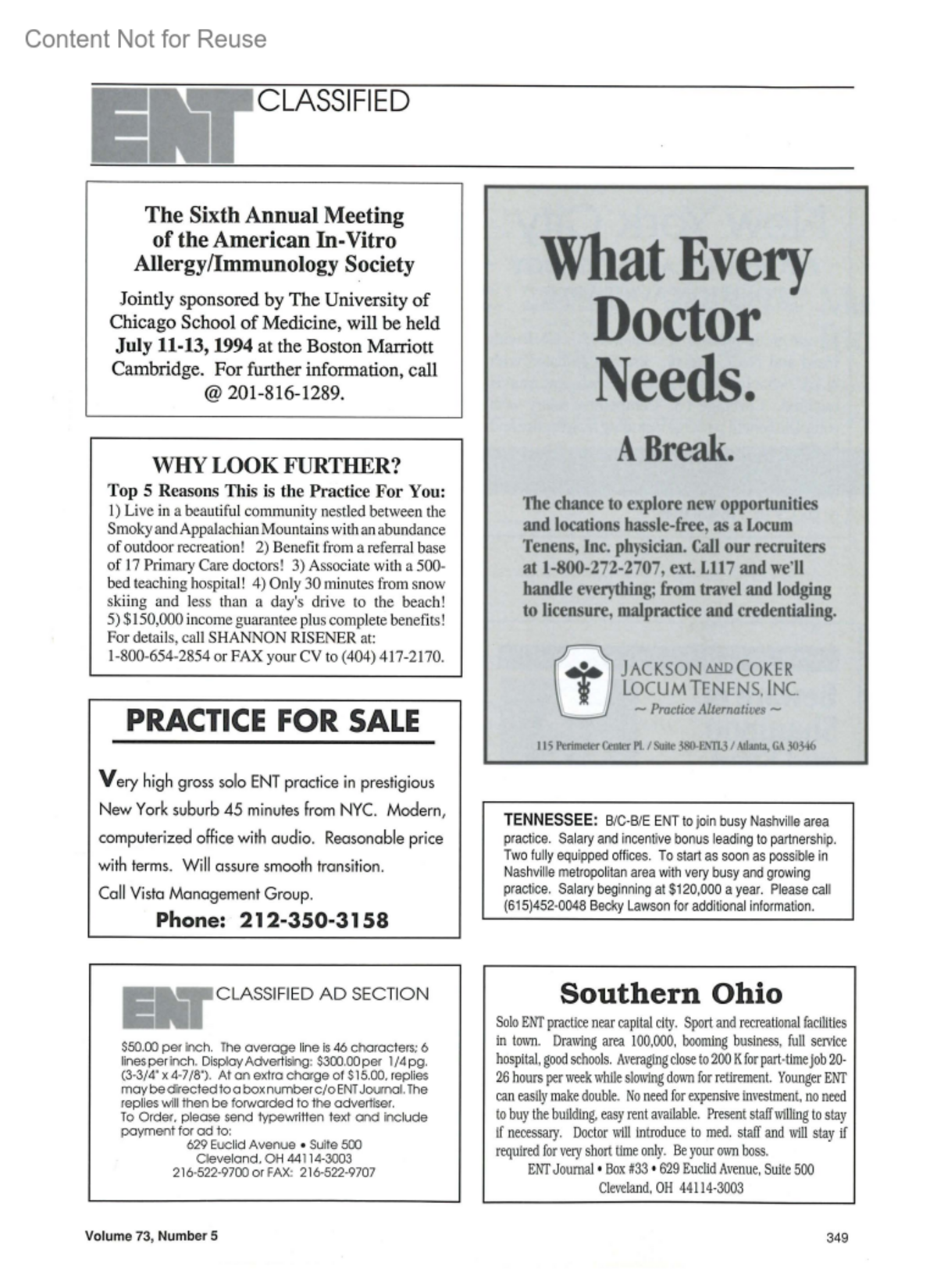 Ear, Nose & Throat Journal 73(5):p 349-350, May 1994. | DOI: 10.1177/014556139407300523