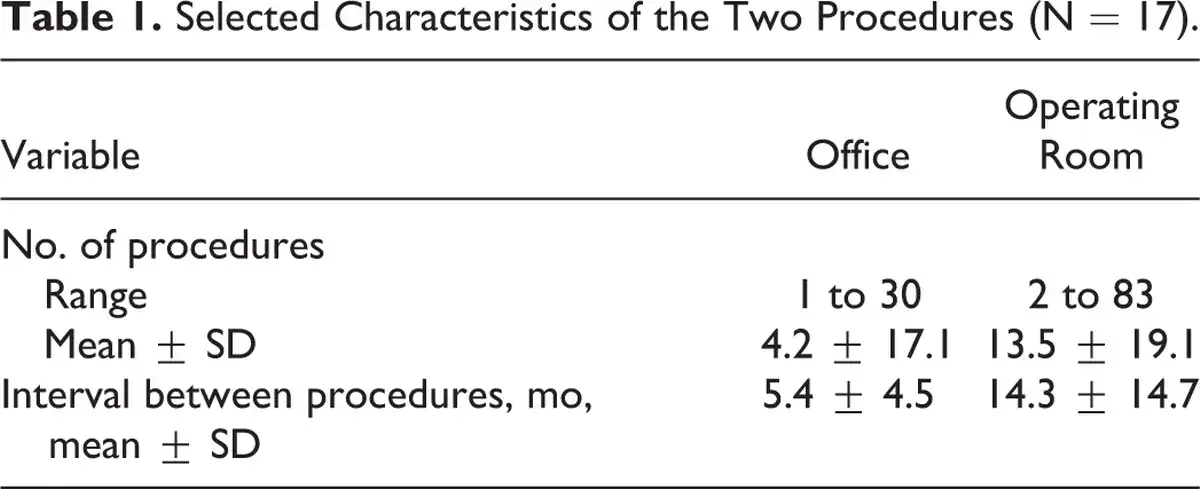 Another complicating factor of our study is that some patient responses did not match the corresponding objective data. For example, patients self-reported that the frequency with which they underwent each type of procedure was similar. However, their medical records indicated that patients underwent an office procedure three times more often than an operating room procedure.