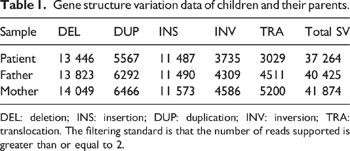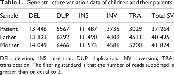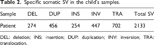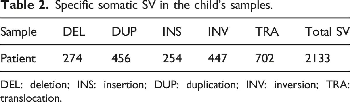 Based on the correlation analysis of the child’s samples, the structural variation of the normal samples was removed and the unique somatic SV data of the child’s samples were obtained (Table 2, Figure 2 (C)).