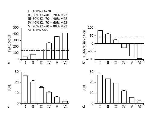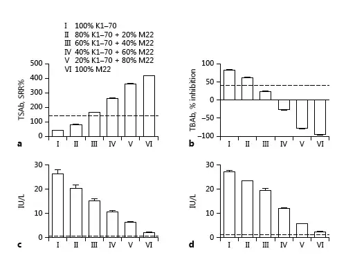 Detection of Various Human TSHR MAb Mixtures with Stimulating (M22) and Blocking MAb (K1–70) Activities