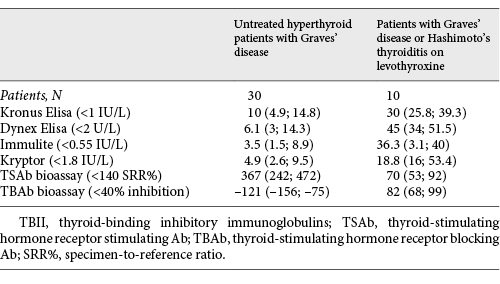 - 14. Leschik JJ, Diana T, Olivo PD, Konig J, Krahn U, Li Y, Kanitz M, Kahaly GJ: Analytical performance and clinical utility of a bioassay for thyroid-stimulating immunoglobulins. Am J Clin Pathol 2013; 139:192–200.