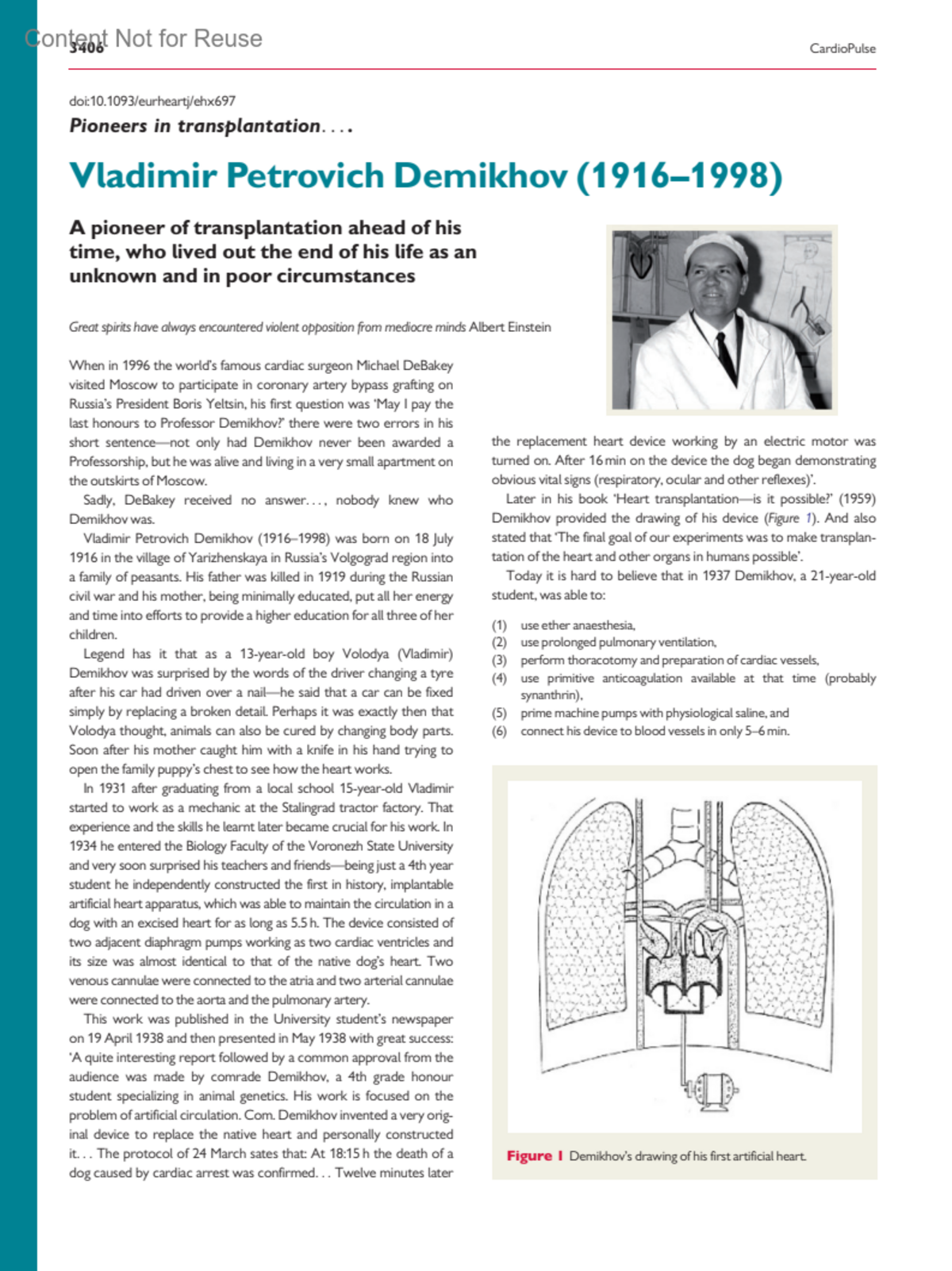 A pioneer of transplantation ahead of his time, who lived out the end of his life as an unknown and in poor circumstances