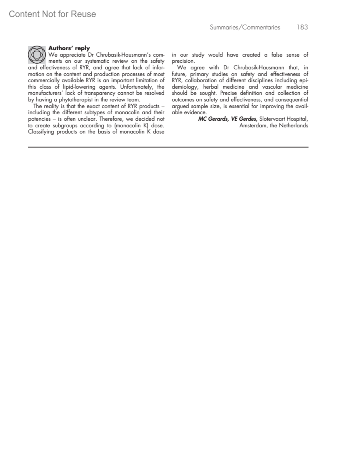 Effectiveness and safety of red yeast rice for lowering blood cholesterolGerards, MCGerdes, VEAuthor information1 Slotervaart Hospital, Amsterdam, the NetherlandsFocus On Alternative And Complementary Therapies An Evidence-Based Approach 20(4):p 183, December 2015.Copyright © 2015 John Wiley & Sons, Ltd