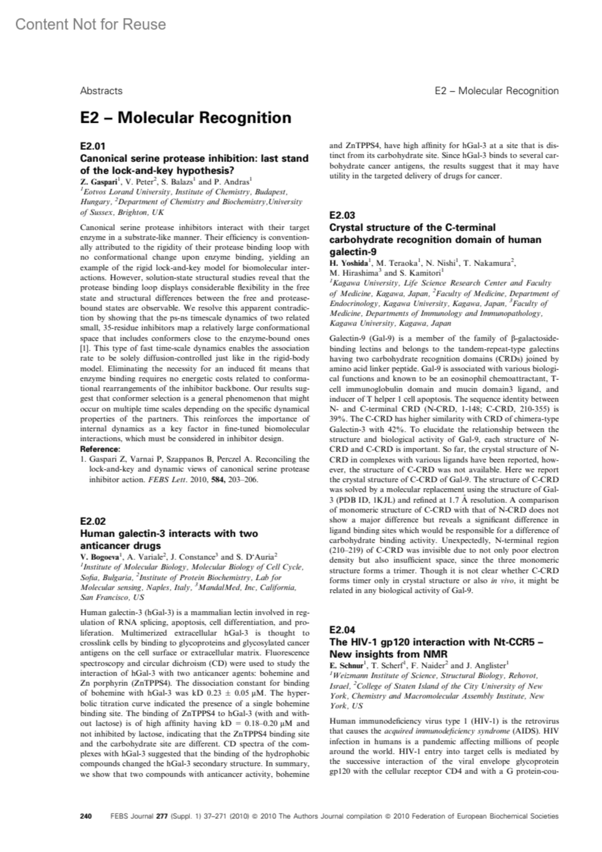FEBS Journal, The 277:p 240, June 2010.
