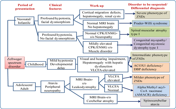 Clues to diagnosis of Zellweger spectrum disorders in different age groups with differential diagnosis