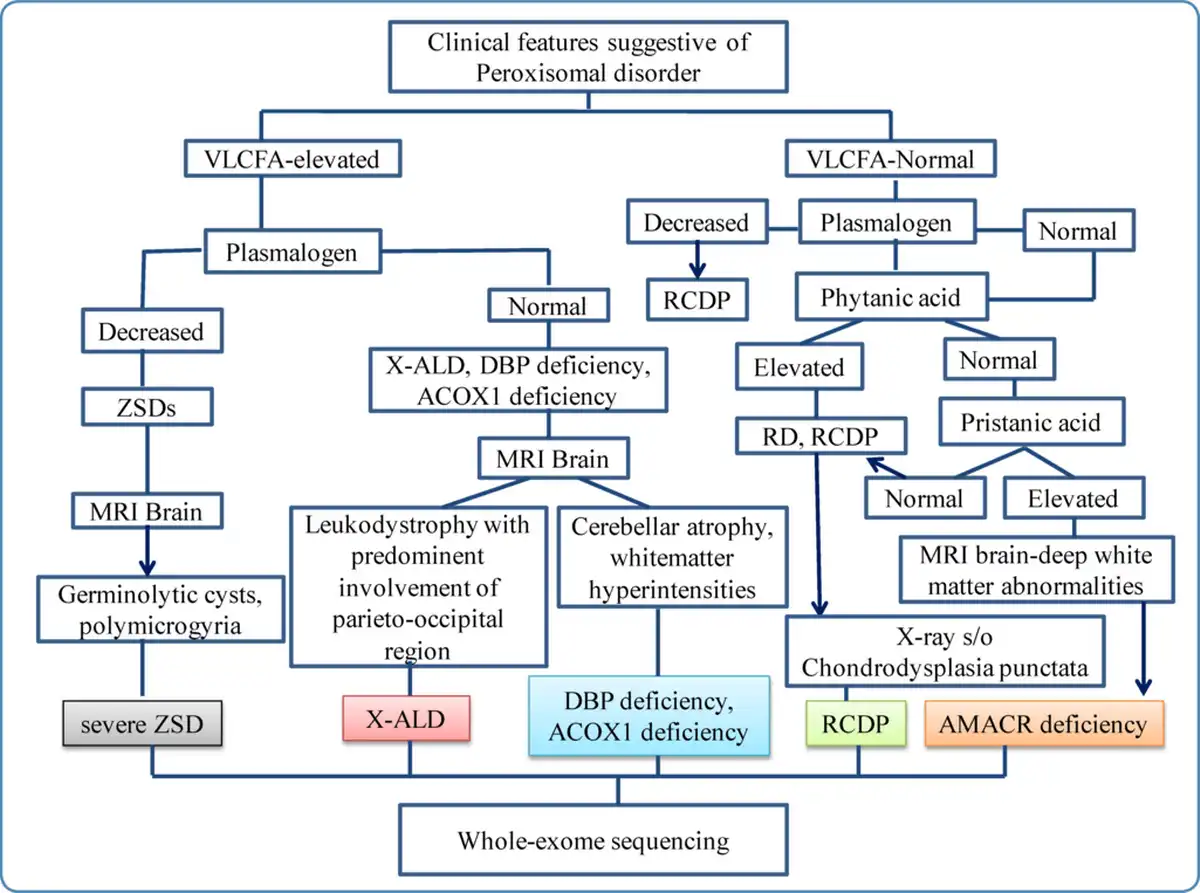 A diagnostic flowchart that can be used for peroxisomal disorders is given in Figure 8.
