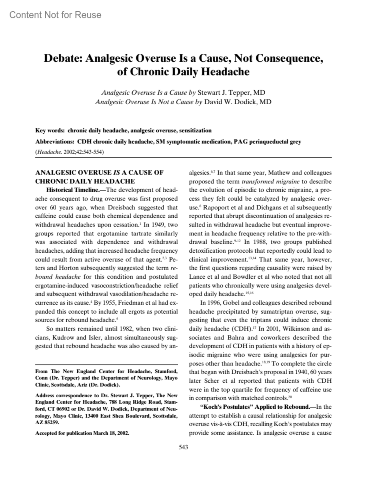 ANALGESIC OVERUSE IS A CAUSE OF CHRONIC DAILY HEADACHE