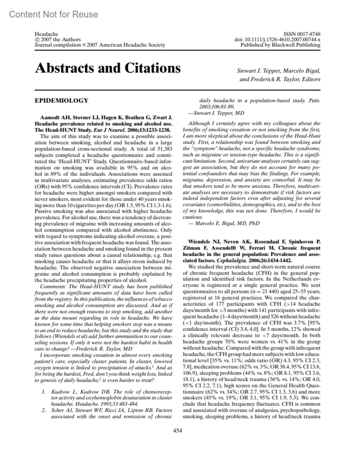Sentinel headache and the risk of rebleeding after aneurysmal subarachnoid hemorrhageBeck, JRaabe, ASzelenyi, ABerkefeld, JGerlach, RSetzer, MSeifert, VHeadache 47(3):p 459-460, March 2007.Copyright © 2007 Blackwell Publishing Ltd.