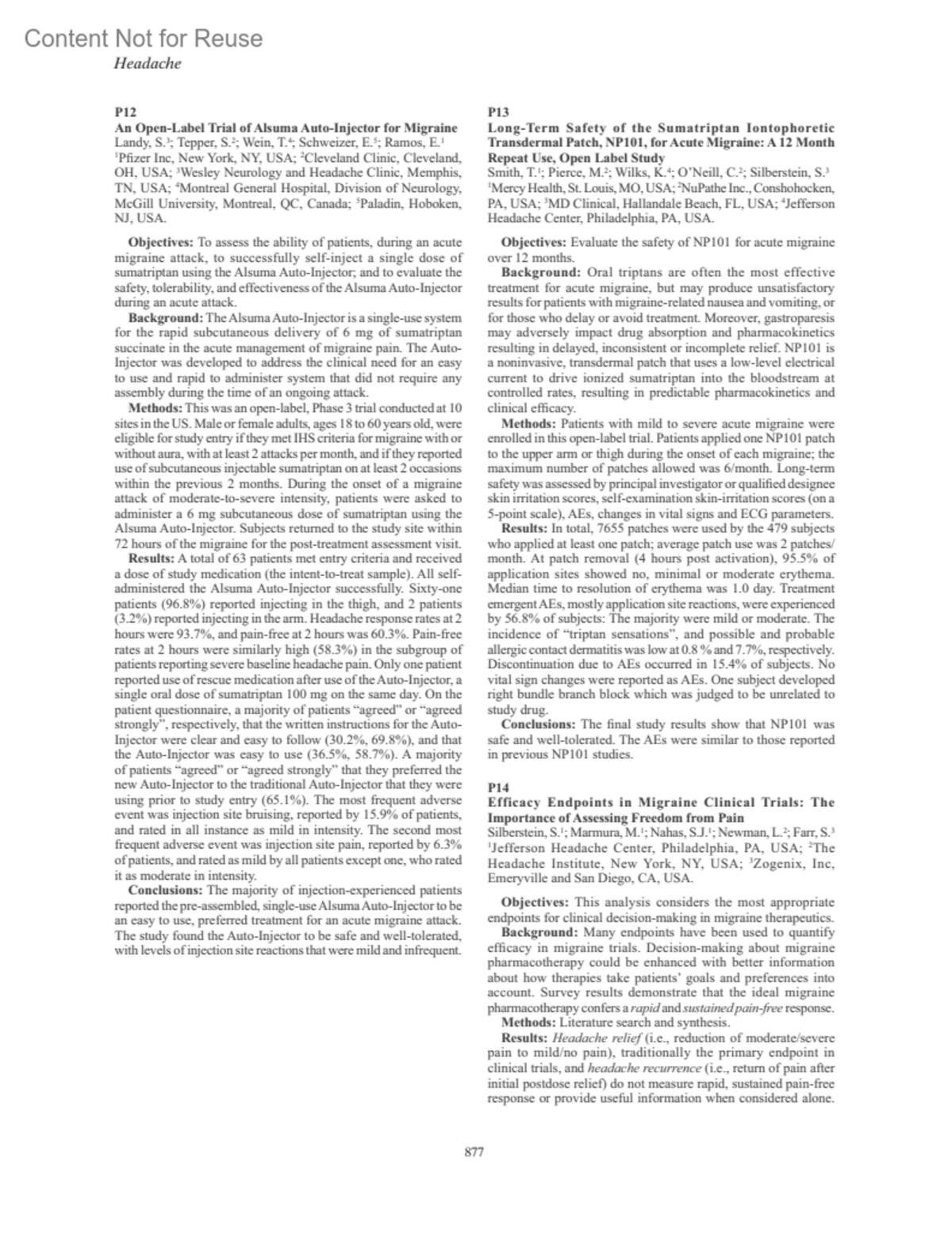 Efficacy Endpoints in Migraine Clinical Trials: The Importance of Assessing Freedom from Pain