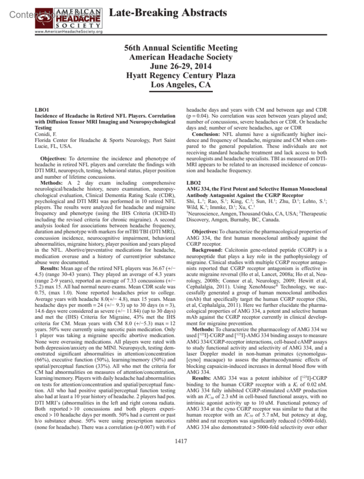 AMG 334, the First Potent and Selective Human Monoclonal Antibody Antagonist Against the CGRP Receptor