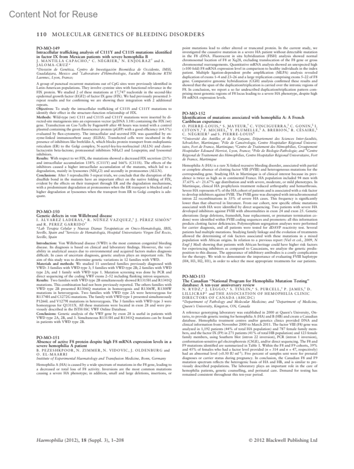 Intracellular trafficking analysis of C111Y and C111S mutations identified in factor IX from Mexican patients with severe hemophilia B