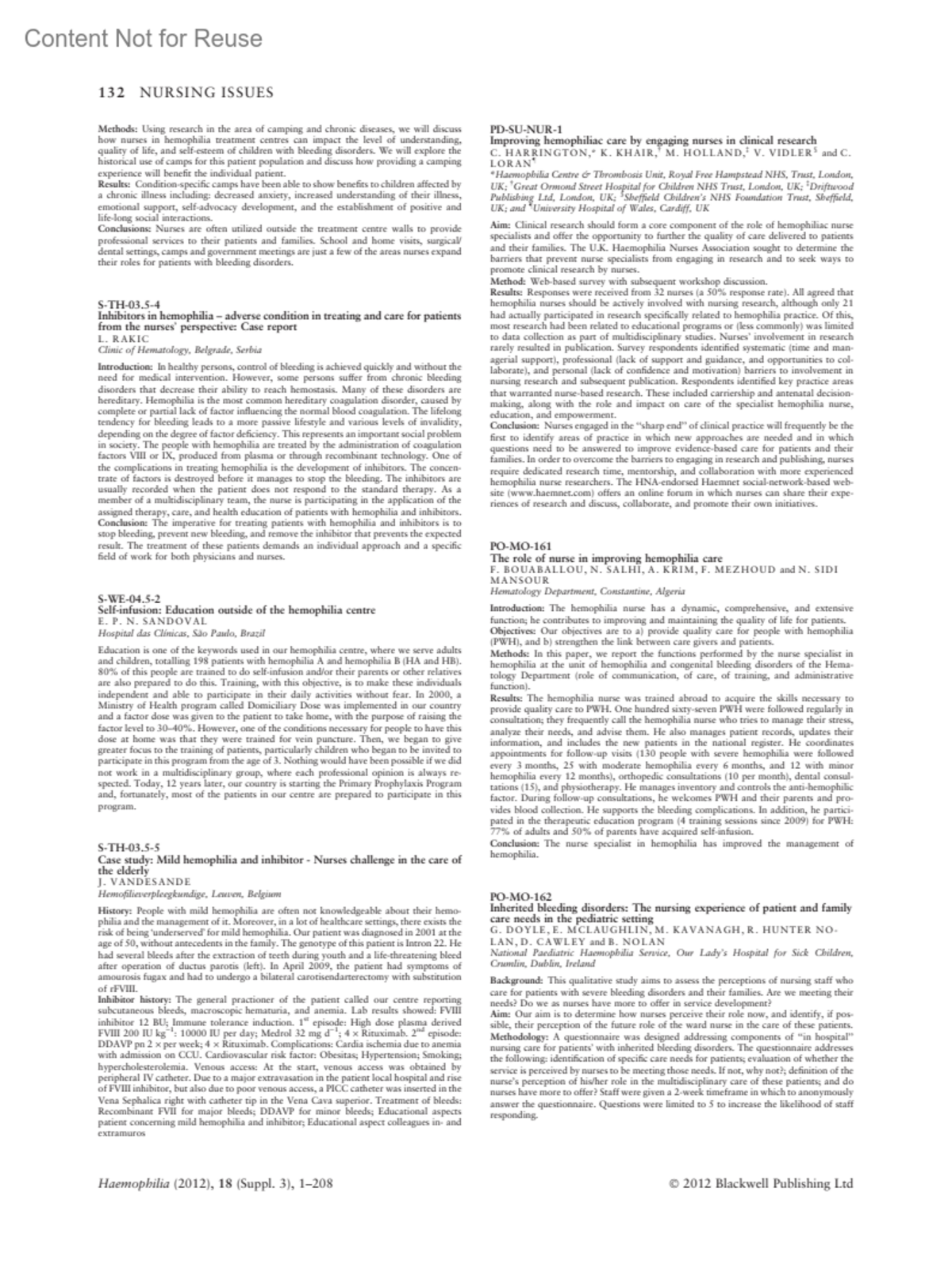 Inherited bleeding disorders: The nursing experience of patient and family care needs in the pediatric setting