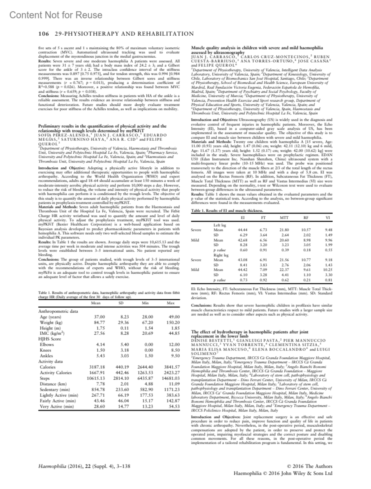 6Department of Physiotherapy, University of Valencia, Spain, Haemostasis and Thrombosis Unit, University and Polytechnic Hospital La Fe, Valencia, Spain