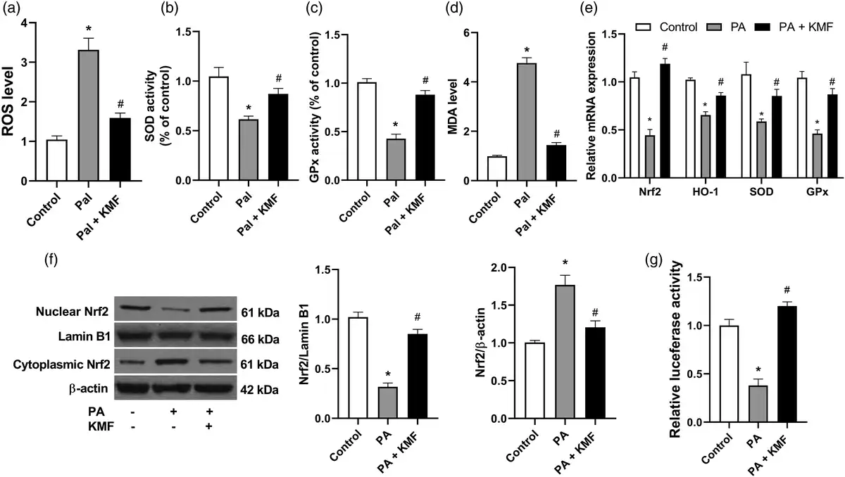 Nrf2 is critical for KMF-mediated protection against PA-induced oxidative stress