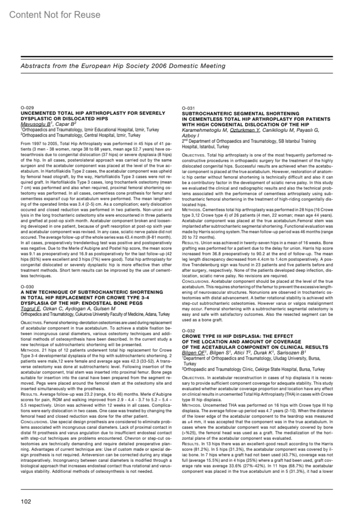 A NEW TECHNIQUE OF SUBTROCHANTERIC SHORTENING IN TOTAL HIP REPLACEMENT FOR CROWE TYPE 3-4 DYSPLASIA OF THE HIP: ENDOSTEAL BONE PEGS