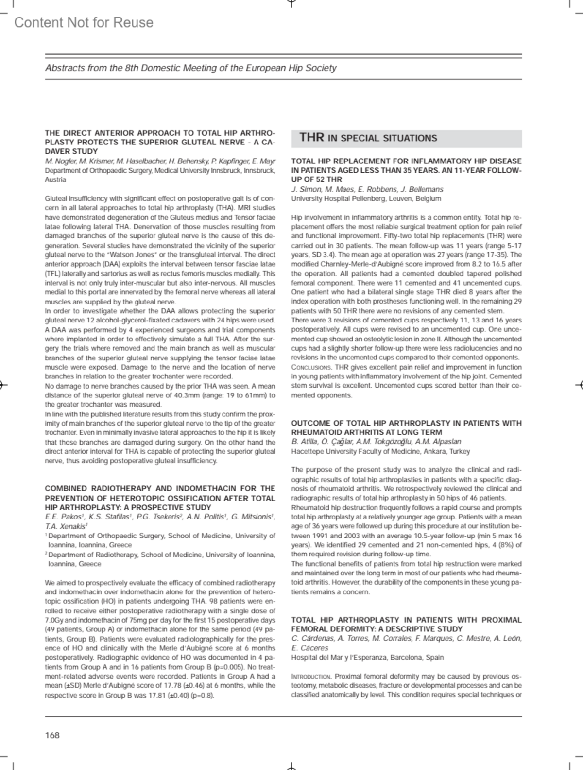 COMBINED RADIOTHERAPY AND INDOMETHACIN FOR THE PREVENTION OF HETEROTOPIC OSSIFICATION AFTER TOTAL HIP ARTHROPLASTY: A PROSPECTIVE STUDY