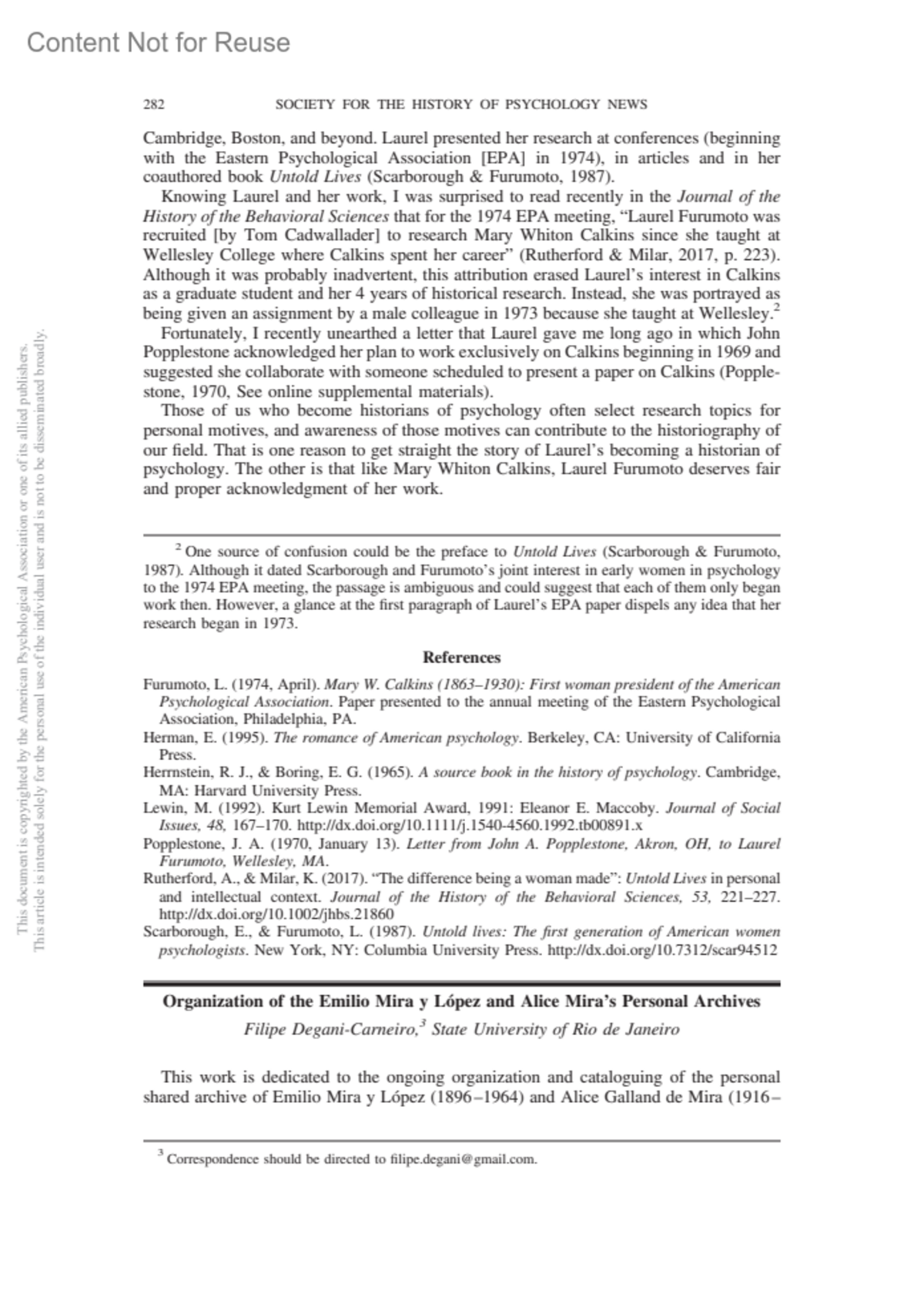 History of Psychology 23(3):p 282-285, August 2020. | DOI: 10.1037/h0101773