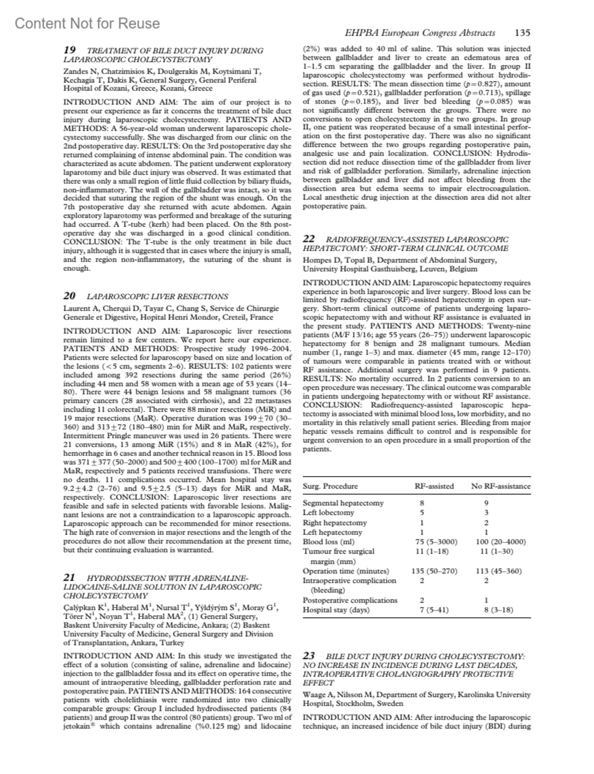 HPB - The Official Journal of The International Hepato Pancreato Biliary Association 7:p 135, March 2005.
