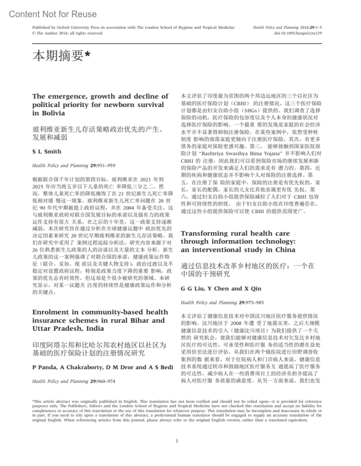 Health Policy & Planning 29(8):p C1-C5, December 2014. | DOI: 10.1093/heapol/czu129