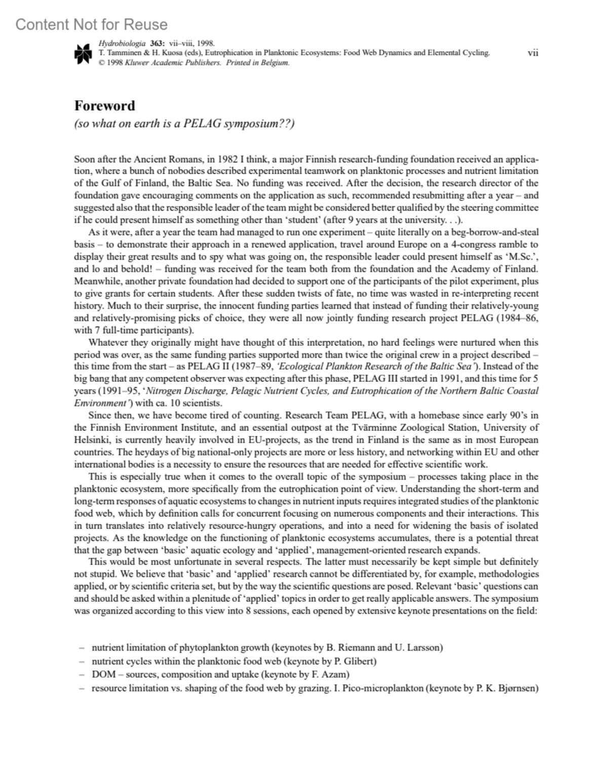 Hydrobiologia 363(3):p VII-VIII, 1998.
