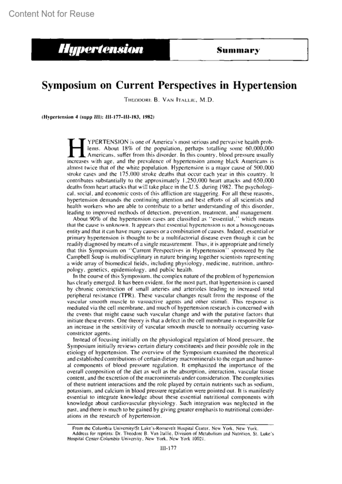 Symposium on Current Perspectives in HypertensionVAN ITALLIE, THEODORE B. M.D.Hypertension 4(5):p III-183, September-October 1982.Copyright © 1982 American Heart Association, Inc.