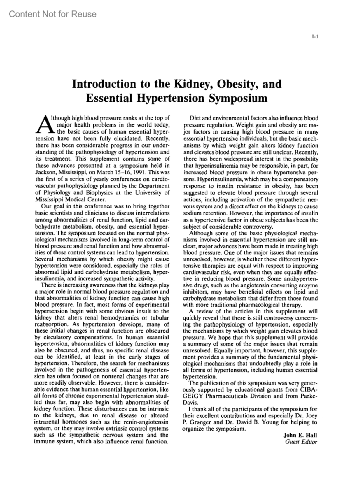Introduction to the Kidney, Obesity, and Essential Hypertension Symposium