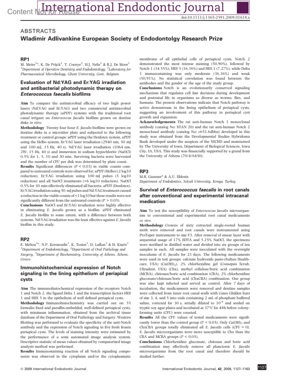 International Endodontic Journal 42(12):p 1127, December 2009.