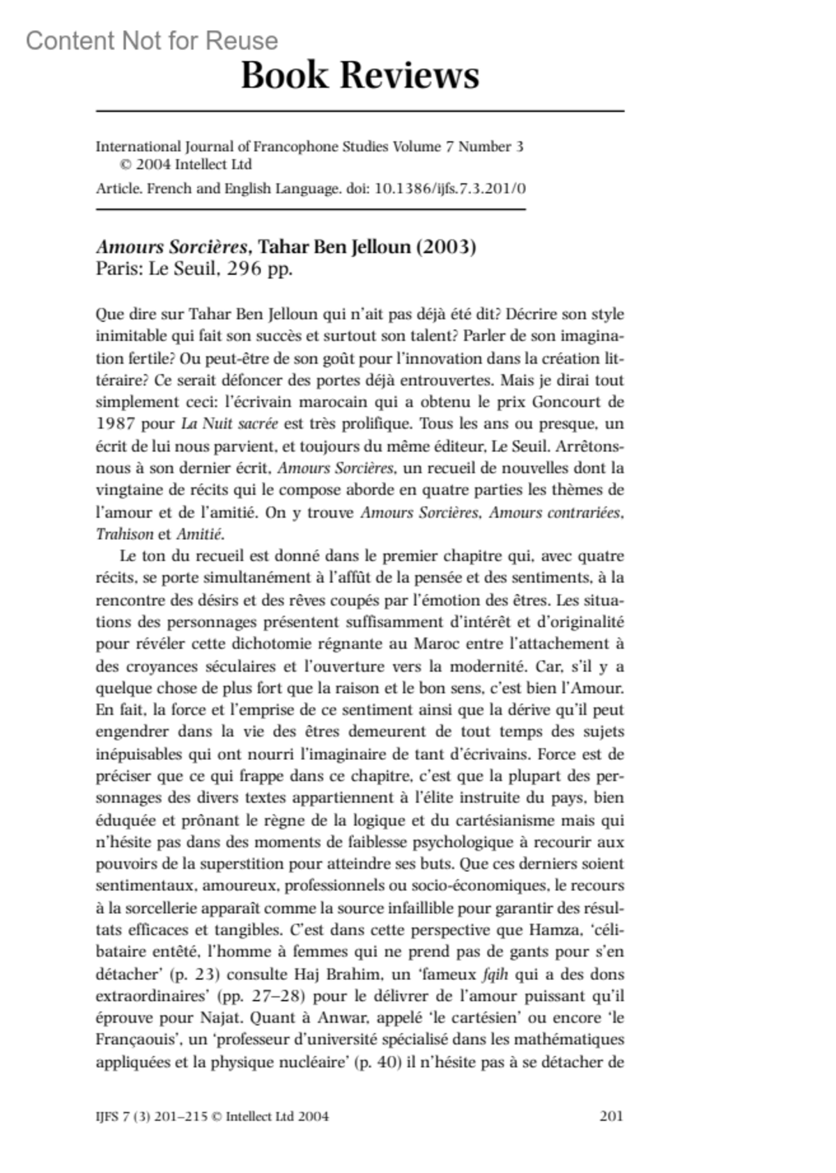 International Journal of Francophone Studies 7(3):p 213-215, November 2004.